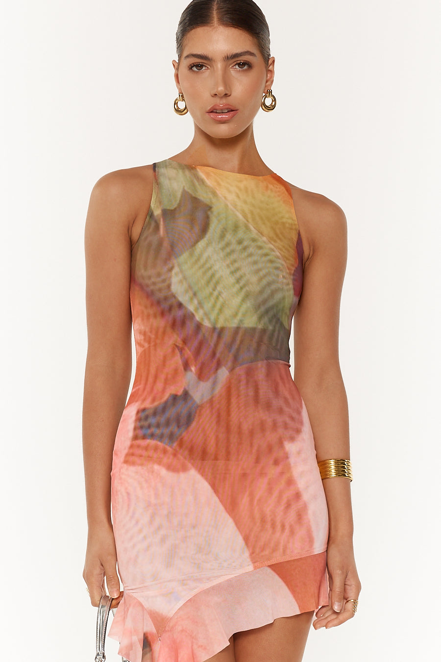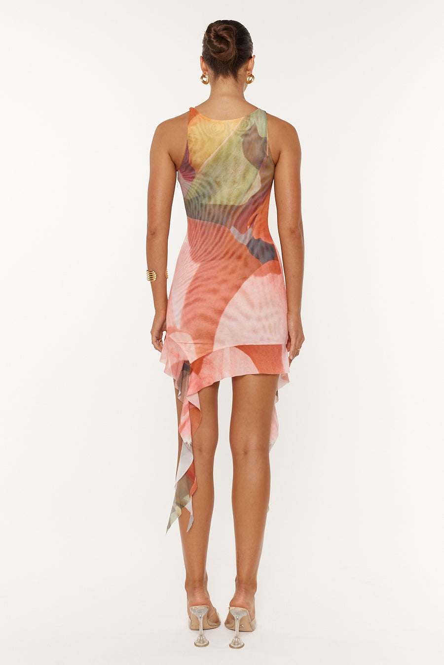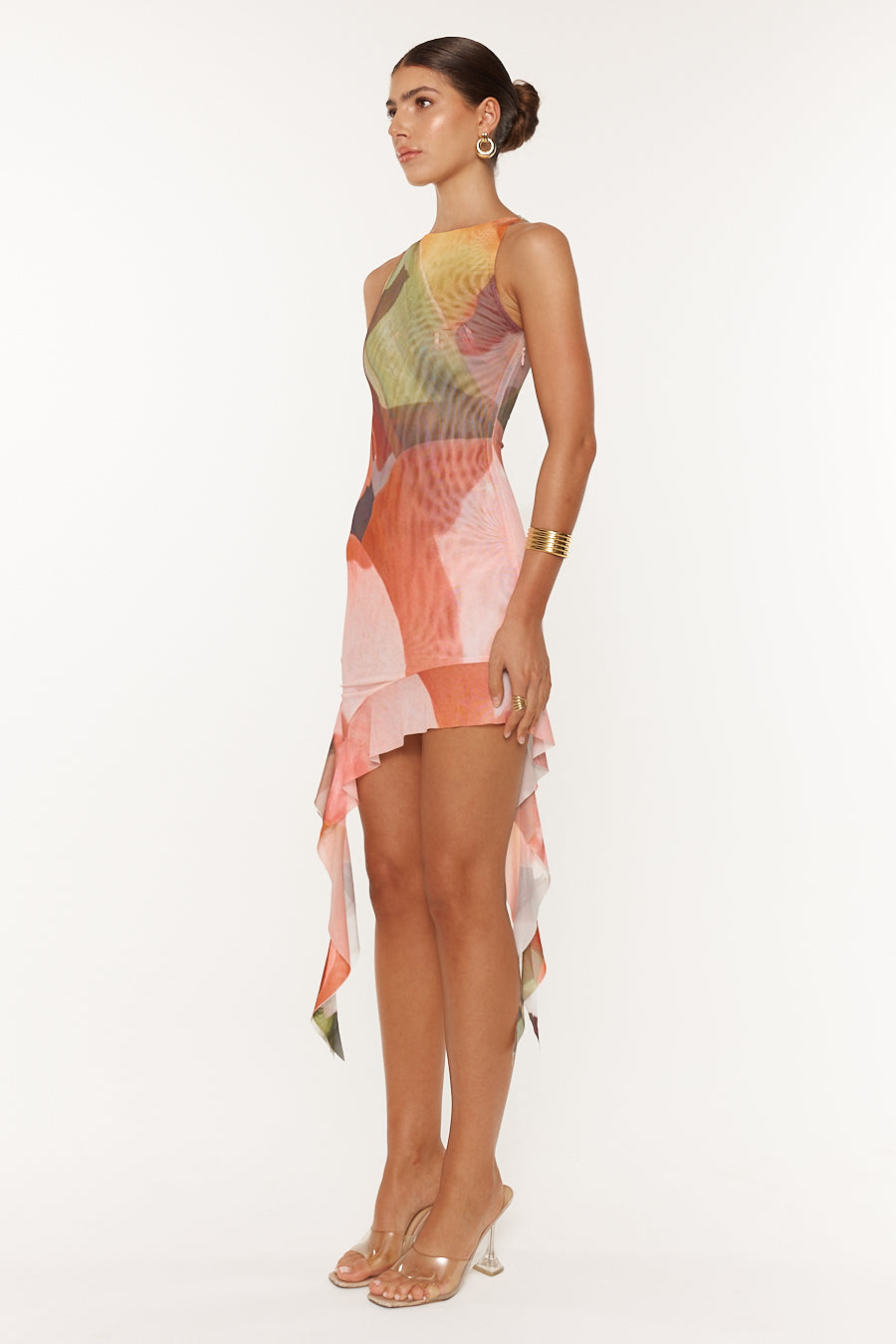 How cute, CALLIOPE Mini Dress in POSY! She will fit nice and snug rolled up in your suitcase for any adventure. Designed with a high neckline with a flowing, draped fabric detail that adds movement and elegance. The asymmetric hemline, finished with a delicate long ruffle, adds an extra layer of sophistication and flair.