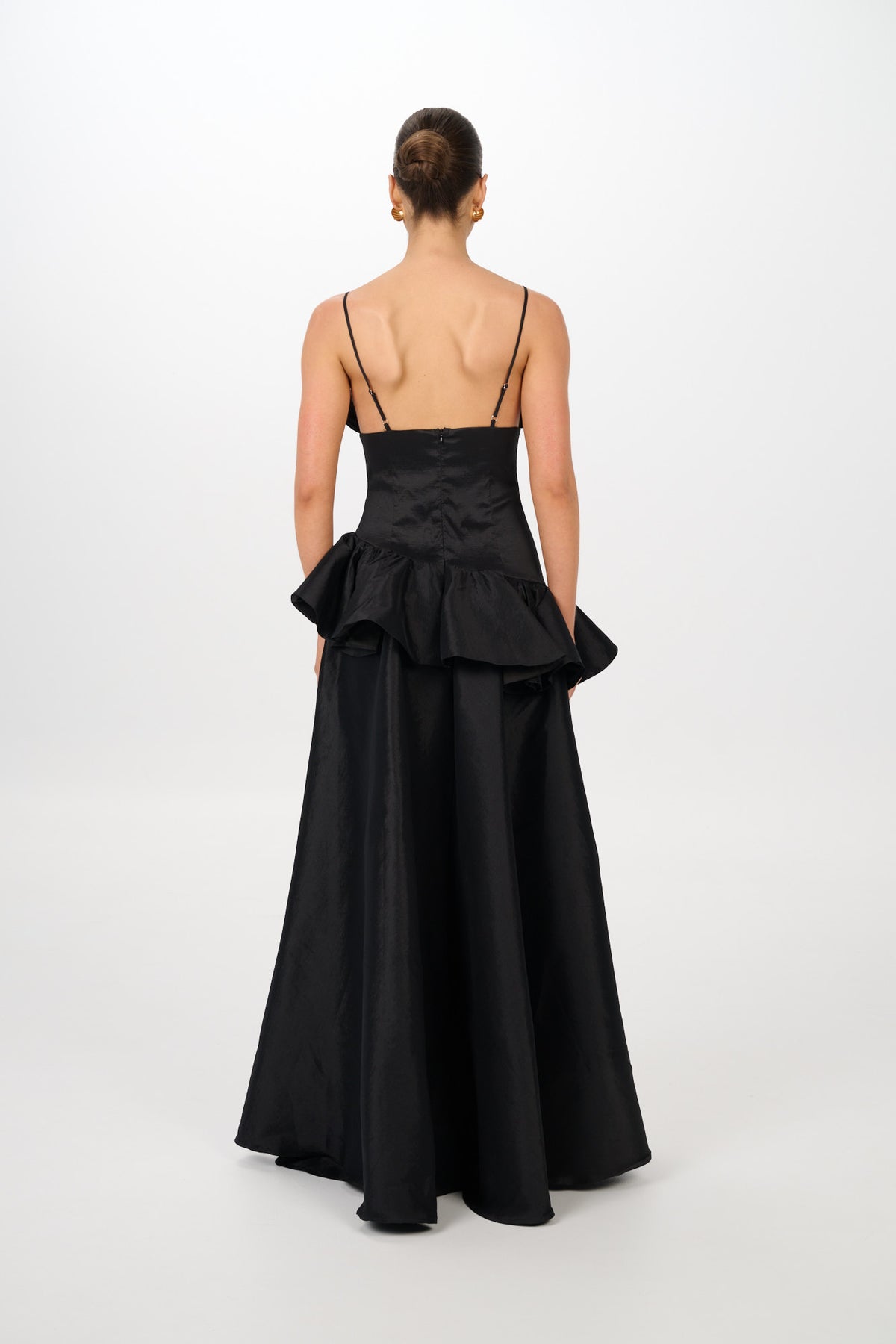 Each gown has been cut to gently graze the floor, and the hemline can be easily tailored to your height for the perfect custom fit.